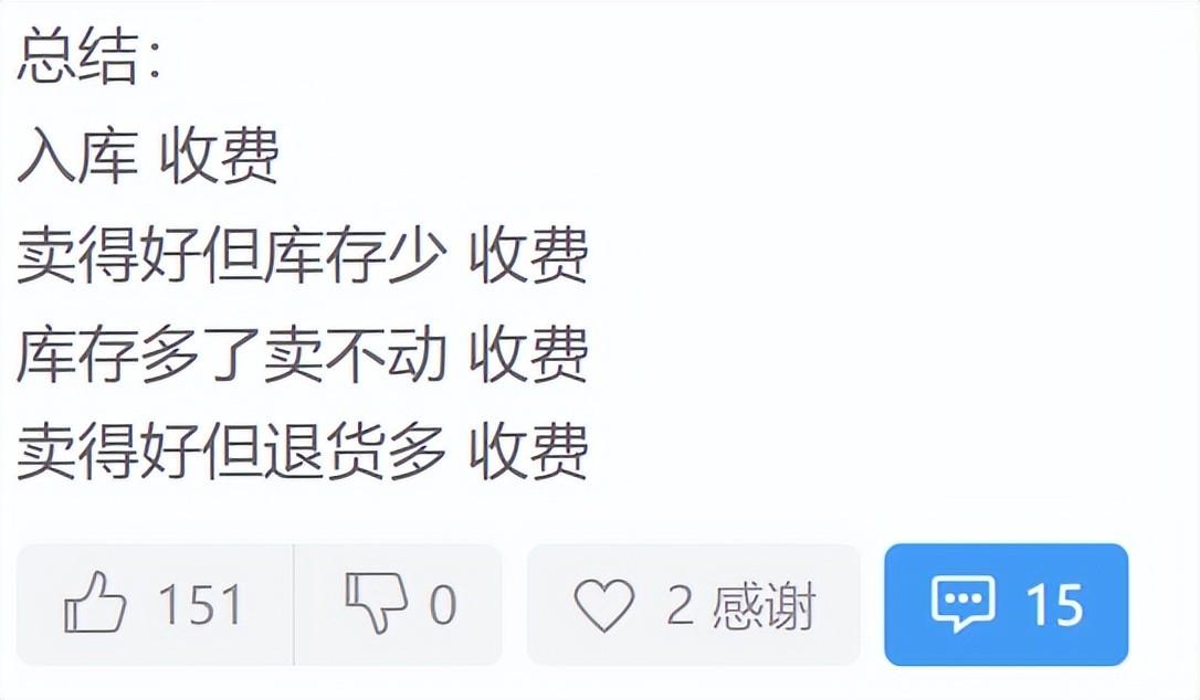 3、库存多了卖不动,收费——月度仓储费、超龄库存附加费等;
