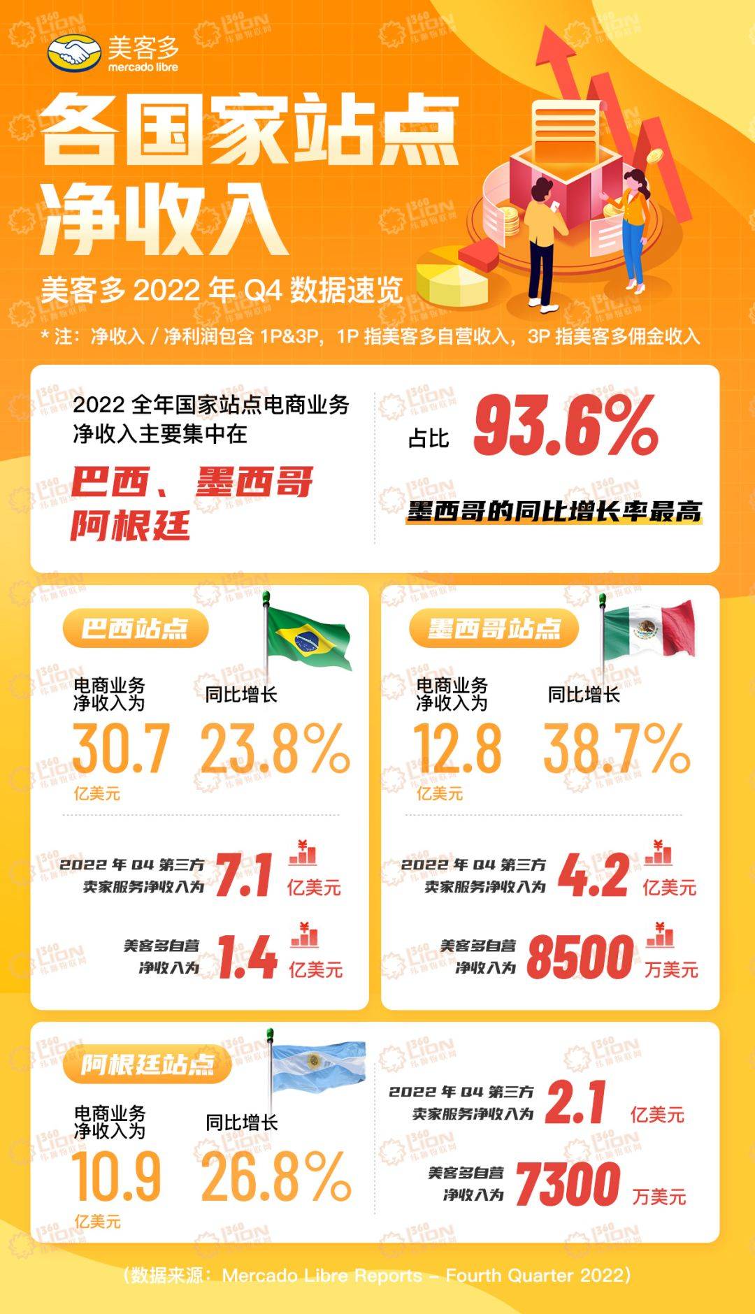 美客多业务遍及阿根廷、巴西、墨西哥等18个国家和地区,作为拉美本土电商的头部平台,它的成绩也映射出市场不少信息。下面我们将围绕美客多第四季度财报,一同解读2023年拉美市场的掘金机会。