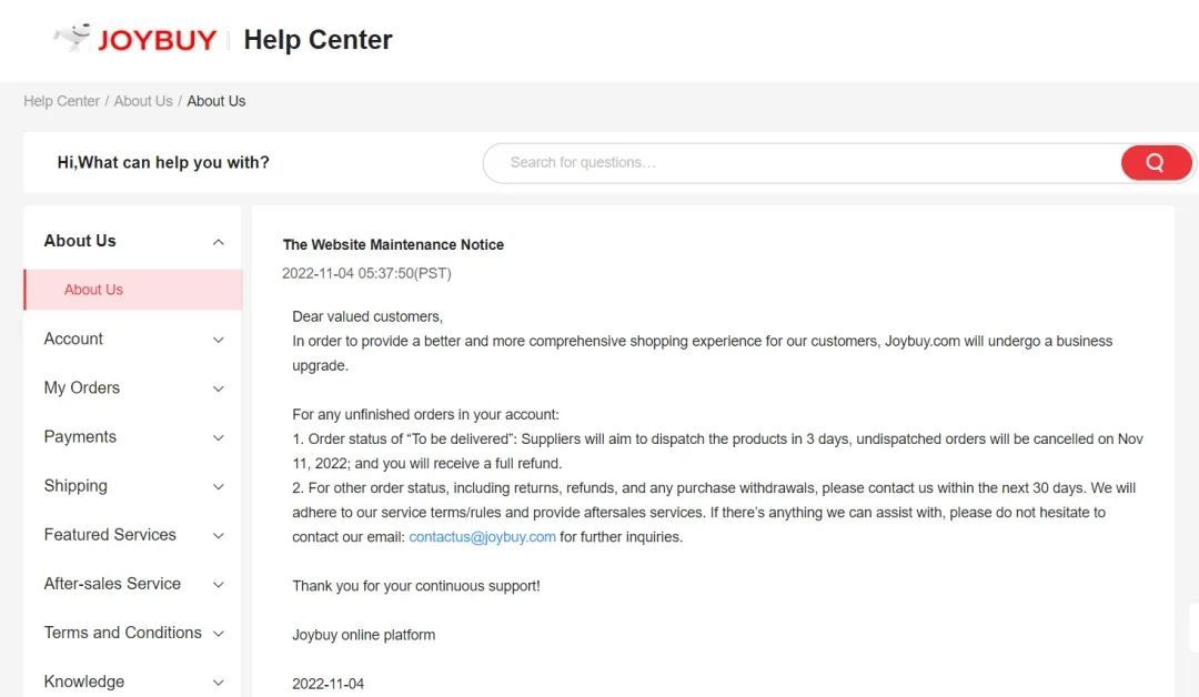 据直击跨境了解,为了妥善处理平台未完成和售后订单,Joybuy将于“双十一”当天取消未发货订单,客户将受到全额退款;而退货、退款和购买撤回等订单状态的买家,在接下来的30天内与平台联系后也会被提供售后服务。